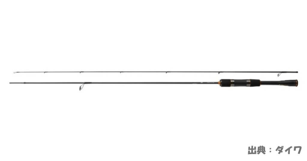 エリアトラウトでは2~3g程度の軽いルアーを使用するので、軽いルアーをキャストしやすい柔軟性のあるロッドが適しています。
